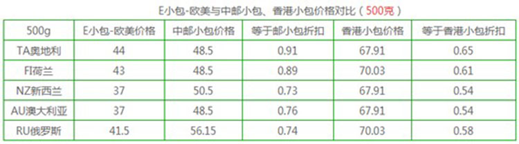 E小包系列产品均有一个共同的特点,价格均比邮政、香港、新加坡等小包都要低很多。
